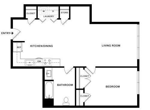 Floor plans are artist’s rendering. All dimensions are approximate. Actual product and specifications may vary in dimension or detail. Not all features are available in every apartment. Prices and availability are subject to change. Please see a representative for details.